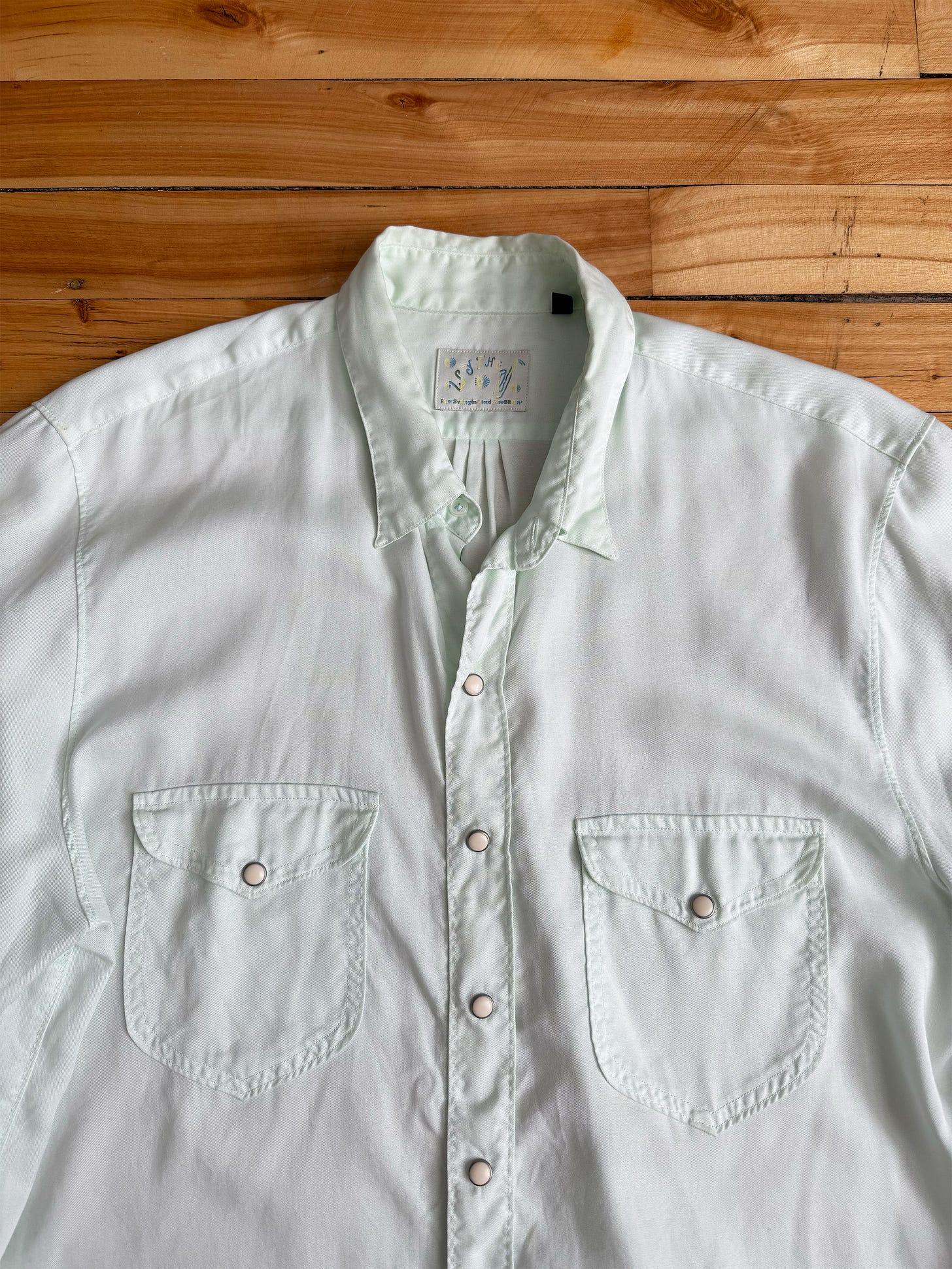 My button ups also needs a desperate refresh because I left myself with only 2 options to wear and that’s not going to cut it. This Niceness button up seems to have everything I want; slim pointed collar, lightweight flowiness with amazing details throughout, and finished in a nice baby blue that I can’t take my eyes off.