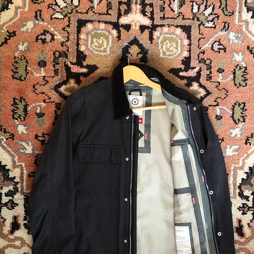Second up is Battenwear’s Sweetbear jacket in collaboration with Post O’Alls. This one is all about the details—Double stitch on the inside will insure maximum durability, metal buttons that don’t run all the way down that end up leaving a relaxed opening near the waist of the fit is a detail I didn’t know I needed, pair that with a smaller hood and you have yourself an instant classic—I’m mostly about zippers on jackets right now, but having a button option isn’t out of the question.