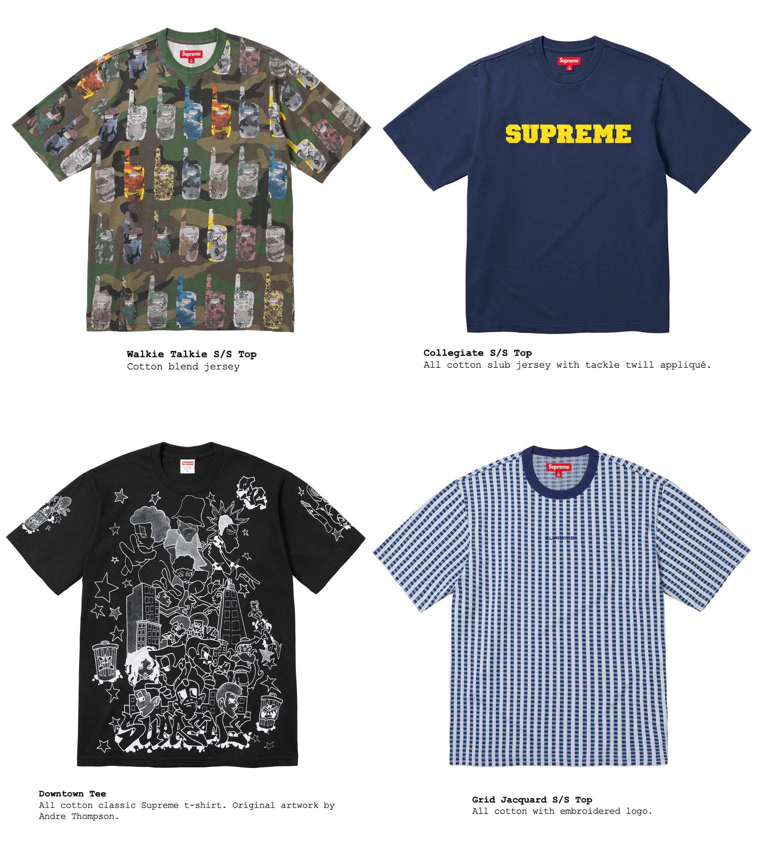 The selection this year is kind of lacking as well, but I will say that the walkie-talkie tee might be my favorite item of the entire season — I don’t know why, but I just loved that camo one. A few great cut-and-sew pieces with graphics that are familiar to many of us:
