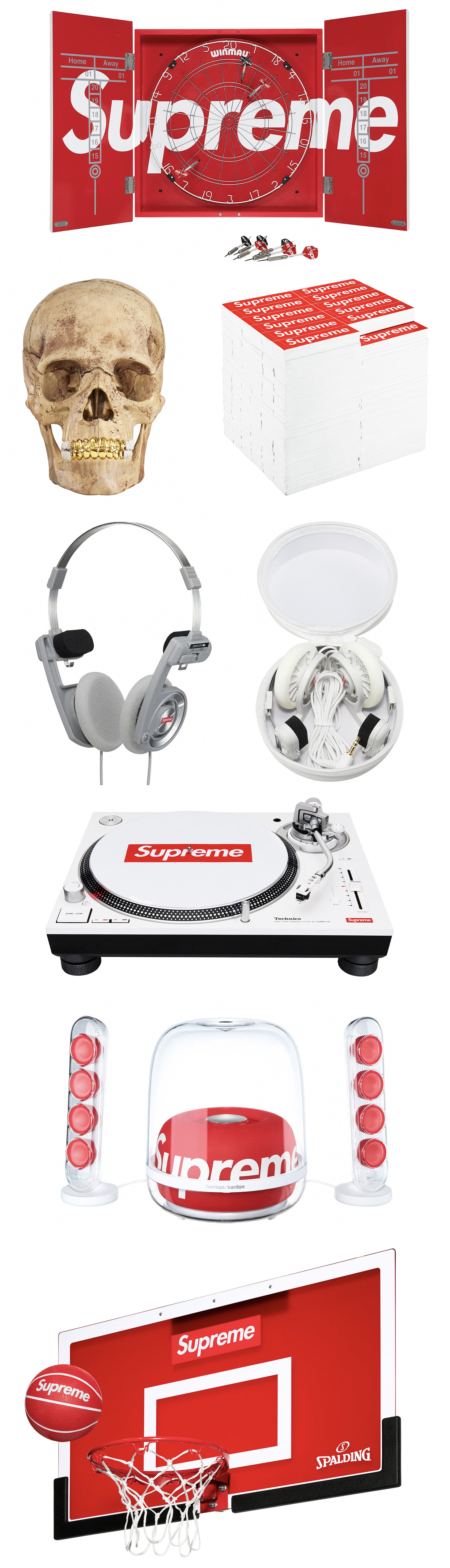 I had to save the best for last. Many have tried but at the end of the day, nobody does accessories the way Supreme does them. Some are useful, and some are completely unnecessary, but that’s why I love them. They also know exactly where to apply the pressure to stay relevant through their accessories. Take the Koss headphones for example… the tiktok NPC’s are about to have a field day with this one. They even made a side table/stool entirely made out of box logo stickers, and if that wasn’t enough why not get the 4D human model skull with embossed logo teeth?
