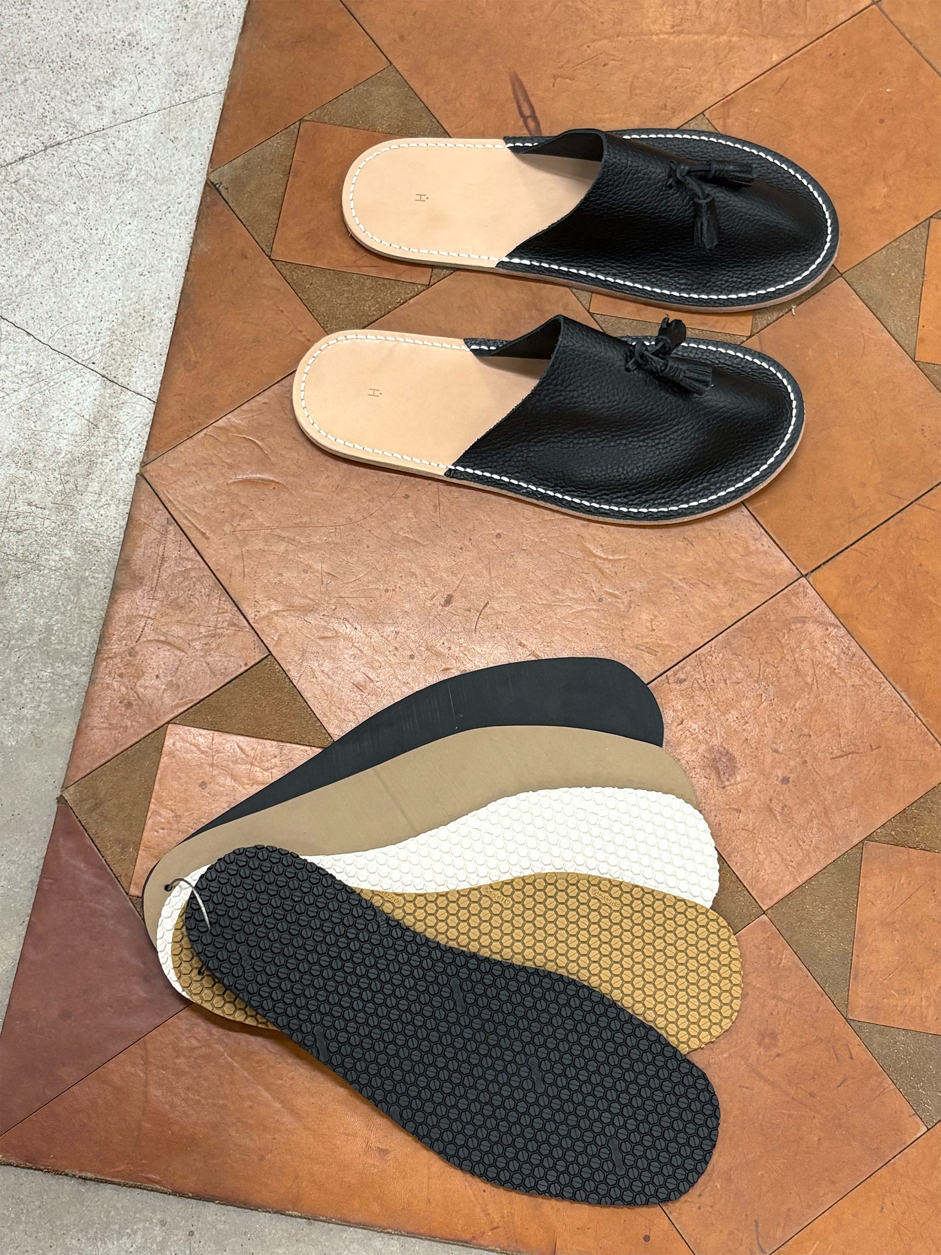 After I had purchased all of my goods, one of the employees walked me over to the shoe repair service to get me set up with my perfect sole for my slippers. This is where the shoe repair keeper had brought out additional soles in various thicknesses and finishings for me to choose from. He had told me that the install would take under an hour, so I had just enough time to get some dinner down the street while I waited. After that, I went to pick up the final product, we exchanged some quick words about my visit to Japan, he gave me a tote bag as a small gift, and I was on my way.