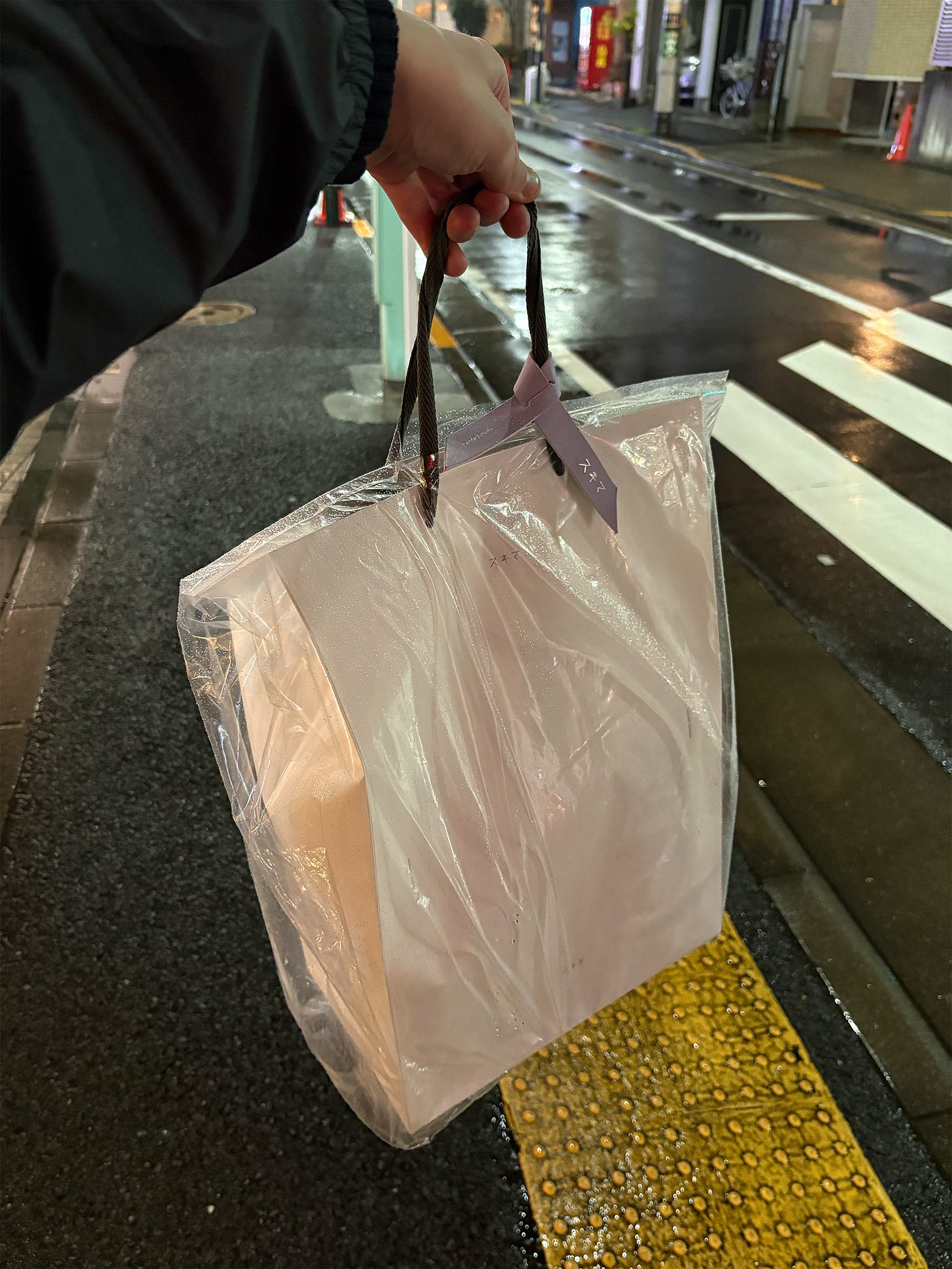 More stores need to do this, but the additional bag to put over the paper bag to protect it from the rain is just a great idea. Why aren’t more stores in North America doing this? Been in situations where I am shopping and the rain starts coming down and before you know it the paper bag that I got with my purchase starts deteriorating—it’s a small detail, but that additional level of care is what I enjoy about shopping here in Japan. This is standard practice. The additional leather wrap on the handle was just a nice little detail that tied the entire experience altogether.