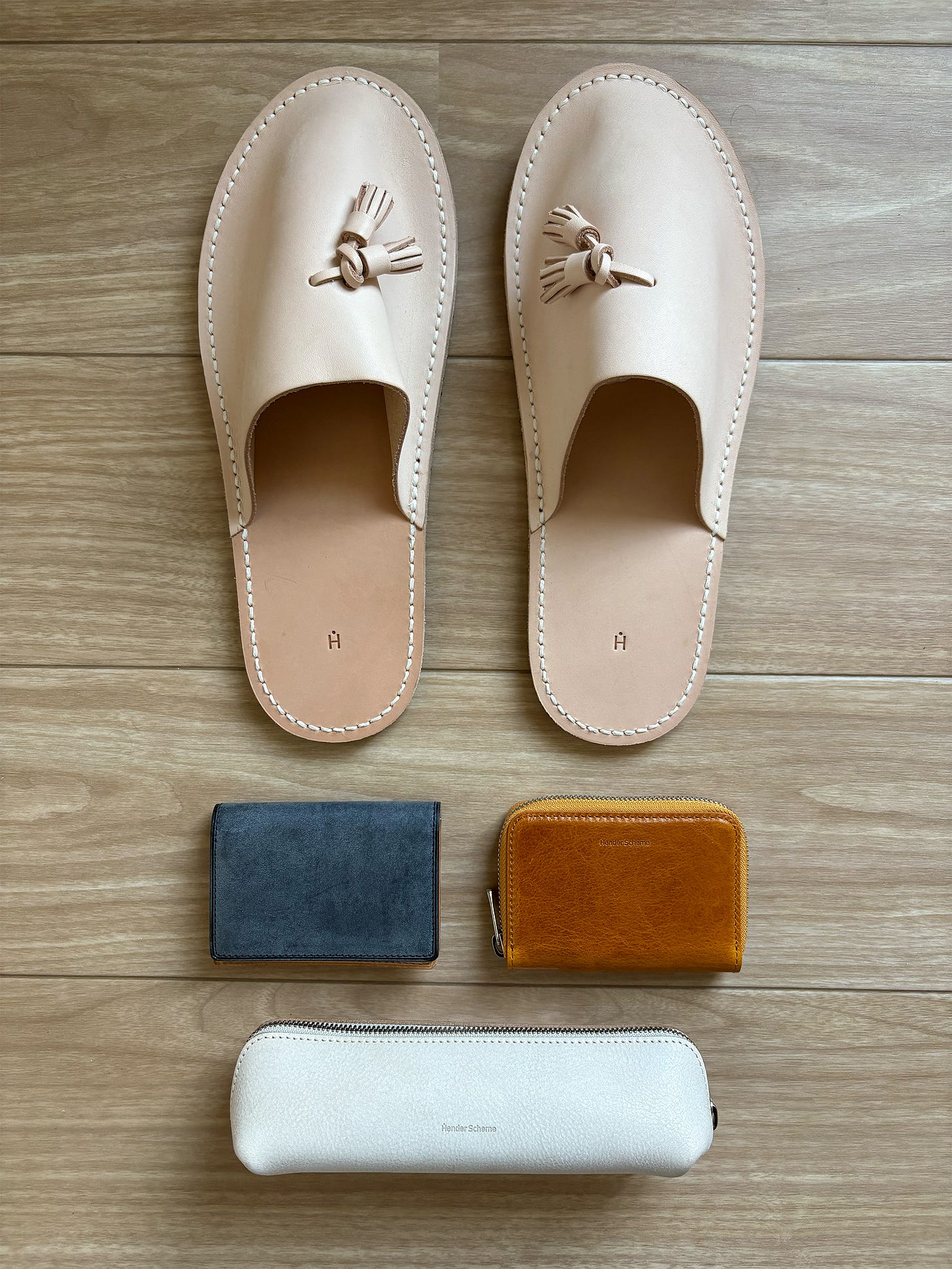 For those new to the brand, Hender Scheme is a Japanese footwear and accessories label that focuses on developing handcrafted products using high-quality sourced leathers. The brand prides itself on its aging process—whether it’s a wallet or a pair of shoes, the products will take new shapes and colors through its rich patina that develops over time, a signature characteristics of their handcrafted goods.