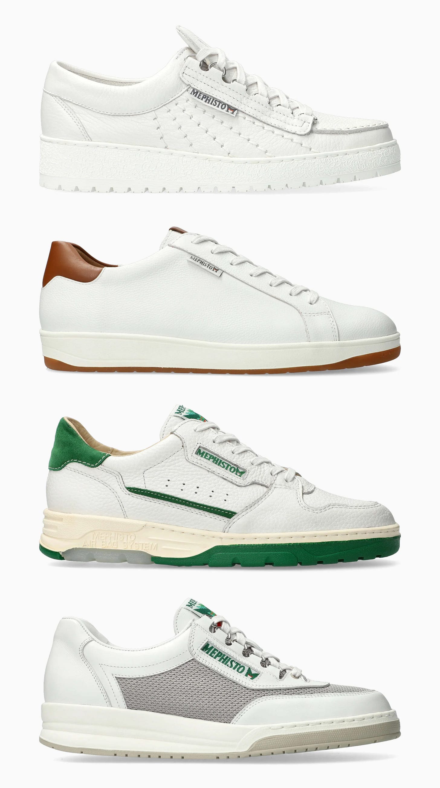 Since we are talking about everyday wear, then we have to aim for comfort first and style after. Mephisto is probably the only brand I can think of right away that makes extremely comfortable footwear that actually looks good—I know that the three recommendations aren’t all white, but that shouldn’t matter. Their quality alone should be enough for you to adjust your vision slightly if you’re open to the idea!